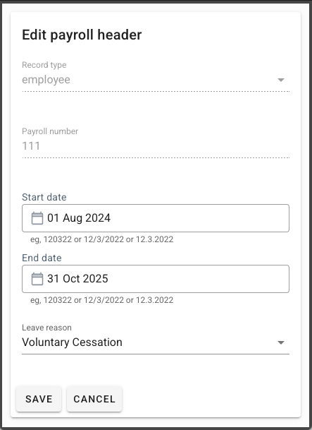 - Saving the payroll header will automatically update the employment record with the employee’s last day of work.