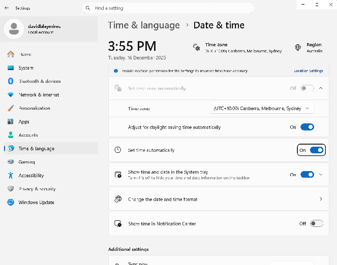 The problem here is the computer was not set to the correct time, it was out by a couple of minutes.