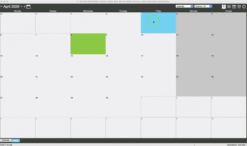 Navigate to: JobBag menu > Active Diary > Leave calendar