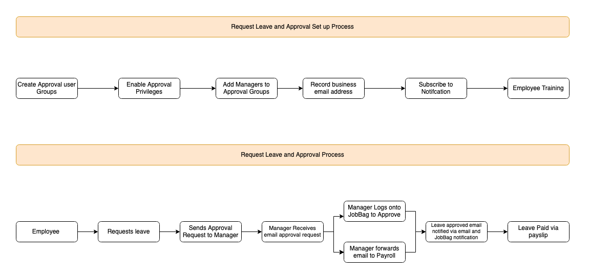 The Leave feature in JobBag makes it easy to manage staff leave requests and approvals directly within JobBag. Employees can submit leave requests, managers can review and approve them either in JobBag or via email, and Payroll can reconcile and process approved leave quickly. This centralised process ensures accurate record-keeping, better visibility of team availability, and smoother communication between staff, managers, and payroll.