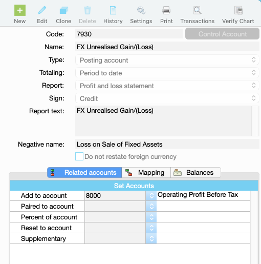 Step 2: Map the Unrealised Gain/Loss Account