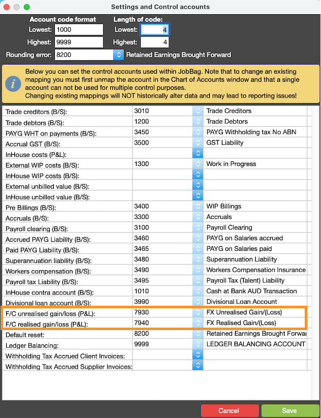 If you have started using foreign currencies in the system, you will need to create and map the unrealised and realised FX gain/loss accounts so currency movements are reported correctly.